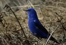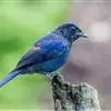 蓝大翅鸲是鹟科、大翅鸲属小型鸟类,体长19-21厘米。两翅尖长。雄鸟通体鲜紫蓝色具金属光泽。两翅和尾黑色。雌鸟上体灰褐色,头、颈、翕具棕白色纵纹,翅上有白色翅斑。虹膜暗褐色,嘴、脚黑色。…全部>>