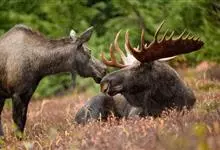 驼鹿:鹿科、驼鹿属动物。体长200-260厘米,肩高160-240厘米,体重400-700千克。肩部特别高耸,则又像骆驼背部的驼峰,因此得名。以雄性的掌形鹿角为特征。驼鹿共有8个亚种,…全部>>