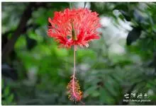 吊灯扶桑 Hook. f.)为锦葵科木槿属的常绿灌木。高达3米;小枝常下垂;叶椭圆形或长圆形,先端尖或短渐尖,基部楔形;花梗细,无毛或具纤毛,中部具节;蒴果长圆柱形;花期全年。因似灯笼高挂,…全部>>