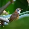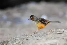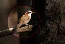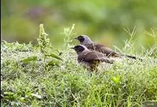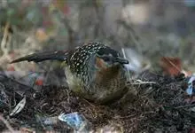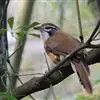 大噪鹛:中型鸟类,体长32-36厘米。额至头顶黑褐色,背栗褐色满杂以白色斑点,斑点前缘或四周还围有黑色。初级覆羽、大覆羽和初级飞羽具白色端斑。尾特长,均具黑色亚端斑和白色端斑。颏、喉棕褐色,…全部>>