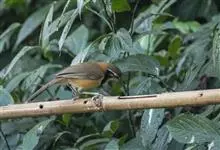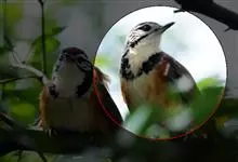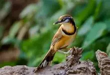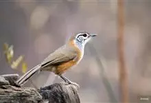 黑领噪鹛是雀形目画眉科噪鹛属鸟类,又名领笑鸫。头顶和上体褐色;眼先和眉纹白色;脸部具黑白相间的纵纹;颈侧至胸前具显著的黑色宽带,形成一半领环,其后方的颈背向下至两胁皆为棕黄色,其余下体白色;尾褐色,…全部>>