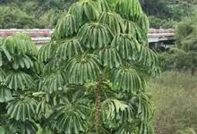昆士兰伞木,吕松鹅掌柴 ,称昆石兰遮树,澳洲鸭脚木、方式叶鹅掌柴、伞树、大叶伞。叶片阔大,柔软下垂,形似伞状,株形优雅轻盈,易于管理,适于客厅的墙隅与沙发旁边置放,是室内理想的观叶植物。但目前多由…全部>>