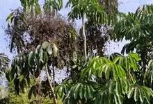 昆士兰伞木,吕松鹅掌柴 ,称昆石兰遮树,澳洲鸭脚木、方式叶鹅掌柴、伞树、大叶伞。叶片阔大,柔软下垂,形似伞状,株形优雅轻盈,易于管理,适于客厅的墙隅与沙发旁边置放,是室内理想的观叶植物。但目前多由…全部>>