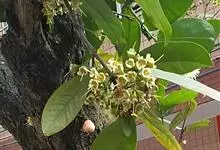 大果榕是桑科榕属的小乔木,株高可达10米;幼枝被柔毛;叶互生,宽卵状心形或近圆形;雄花无梗、匙形、花丝长,雌花生于雌株榕果内,子房白色;榕果簇生于树干基部或老茎短枝上、扁球形或陀螺形,…全部>>