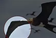 军舰鸟是鹈形目军舰鸟科军舰鸟属鸟类的通称,又称军人鸟。身体较小,腿又短又细,长有钩状嘴;翅膀细长,有很长的叉形尾巴。雄鸟体羽全黑,雌鸟大多数背部、头部和腹部为略带黑色的褐色,而胸部和腋距为白色。…全部>>