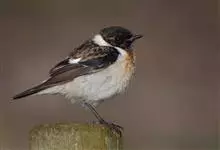 黑喉石鵖,雀形目鹟科石鵖属小型鸣禽,俗名谷尾鸟、黑喉石。其体色为黑褐色。雄鸟头部、背部、两翼及尾黑色,颈侧及翼上具白斑,胸部和腹侧红棕色,腰及尾下覆羽白色。雌鸟体色为褐色,上体具深色纵纹,胸部染棕色,…全部>>