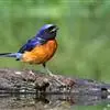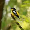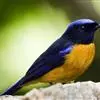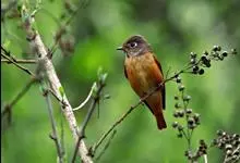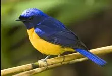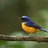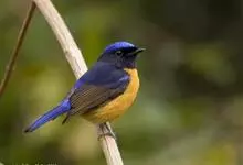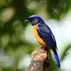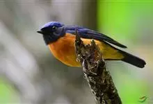 棕腹大仙鹟:体重24-28克,体长15-17厘米,是一种小型的色彩亮丽的鹟。雄鸟上体深蓝,下体棕色,脸黑,额、颈侧小块斑、翼角及腰部亮丽闪辉蓝色。与棕腹仙鹟易混淆,区别在色彩较暗。雌鸟灰褐,…全部>>