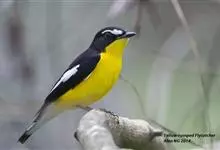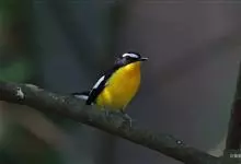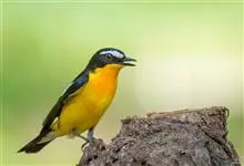 白眉姬鹟是小型鸟类,体长11-14厘米。雄鸟上体大部黑色,眉纹白色,在黑色的头上极为醒目。腰鲜黄色,两翅和尾黑色,翅上具白斑。下体鲜黄色。雌鸟上体大部橄榄绿色。腰鲜黄色,翅上亦具白斑。下体淡黄绿色。…全部>>
