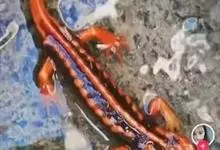 大凉疣螈雄性全长18.6~22㎝,雌性19.4~23㎝。头部扁平,头长略大于头宽,吻端平切而较高,近于方型。尾基部较宽,后段甚侧扁,尾背鳍褶薄,腹鳍褶厚,尾末端钝尖。体尾褐黑色或黑色,…全部>>