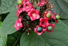 臭牡丹,唇形科大青属灌木,植株有臭味;花序轴、叶柄密被褐色、黄褐色或紫色脱落性的柔毛;小枝近圆形,皮孔显著;叶片纸质,宽卵形或卵形;伞房状聚伞花序顶生,密集;花冠淡红色、红色或紫红色;核果近球形,…全部>>