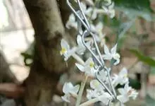寄树兰 Seidenf.et Garay):茎坚硬,圆柱形,长达1米,粗5毫米,节间长约2厘米,下部节上具发达而分枝的根。叶二列,长圆形,先端近截头状并且啮蚀状缺刻。花序与叶对生,比叶长,常分枝,…全部>>