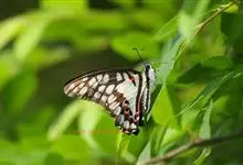 碎斑青凤蝶是凤蝶科、青凤蝶属昆虫。体背面黑色,具绿毛,腹面淡白色。翅黑褐色,斑纹淡绿色或浅黄色;前翅中室有5个斑纹排成1列;后翅基半部有5-6个大小不同的纵斑。后翅亚外缘的斑列加宽,…全部>>
