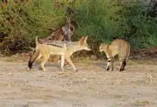 亚洲胡狼是金豺的指名亚种,体型中等、匀称,四肢修长,趾行性,利于快速奔跑。头腭尖形,颜面部长,鼻端突出,耳尖且直立,嗅觉灵敏,听觉发达。犬齿及裂齿发达;上臼齿具明显齿尖,…全部>>
