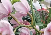 大花蕙兰,兰科兰属的常绿附生草本植物。大花蕙兰的假鳞茎椭圆形,粗大;根多为肉质圆柱状,粗壮肥大,大都呈灰白色;叶宽而长,下垂,浅绿色有光泽;花亭斜生,稍弯曲;花大,色泽艳丽,…全部>>