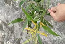 大叶相思是豆科,相思树属常绿乔木,枝条下垂,树皮平滑,灰白色;叶片镰状长圆形,两端渐狭,穗状花序,簇生于叶腋或枝顶;花橙黄色;花萼顶端浅齿裂;花瓣长圆形,荚果成熟时旋卷,果瓣木质,种子黑色,…全部>>