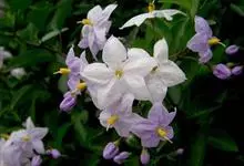 素馨叶白英,是双子叶植物纲、茄科、茄属的一种缠绕灌木,多分枝,光滑无毛,茎具纵向细条纹。聚伞式圆锥花序顶生或侧生;花白带蓝色;萼星形,萼齿长圆形;花冠辐形,具皱折;雄蕊着生于花冠筒喉部,花药黄色,子…全部>>