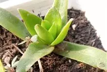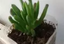 筒叶花月,是景天科青锁龙属的多年生草本植物。植株多分株,灌木状,茎较粗壮,圆柱形,表皮灰褐色;叶片肉质,互生,呈圆筒状,簇生于茎或分枝顶端,叶端呈斜截形,截面为椭圆形;花呈星状,淡白色;花期秋季。…全部>>