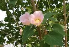 木芙蓉,锦葵科木槿属落叶灌木或小乔木。小枝上有细绒毛;叶片为卵状心形,托叶为披针形,常早落;花单生,花萼为钟形,花冠初为白色或淡红色,后逐渐变为深红色;果实为扁球形,有淡黄色的毛附着。花期8到10月。…全部>>