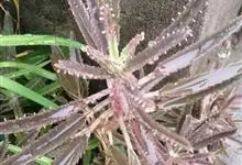 棒叶落地生根是景天科、落地生根属植物。茎直立、粉褐色。叶圆棒形,上表面有沟、粉色,有红褐斑。叶片交互对生,交叉排列成十字形。叶端锯齿上长有很小的幼株、落地后即可生根成活。原产非洲马达加斯加。…全部>>