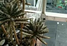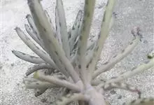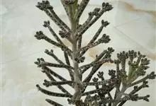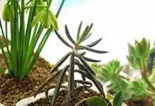 棒叶落地生根是景天科、落地生根属植物。茎直立、粉褐色。叶圆棒形,上表面有沟、粉色,有红褐斑。叶片交互对生,交叉排列成十字形。叶端锯齿上长有很小的幼株、落地后即可生根成活。原产非洲马达加斯加。…全部>>