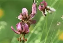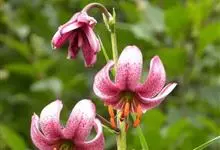 东北百合,别名卷莲花、老哇芋头、轮叶百合、伞蛋花、山丹花,为百合科、百合属多年生球根花卉。鳞茎卵圆形,白色,有节。苞片叶状,花淡橙红色,具紫红色斑点;花被片稍反卷,蒴果倒卵形,花期7-8月,果期9月,…全部>>