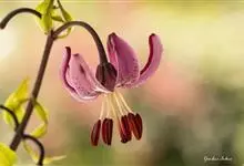 垂花百合是百合科百合属植物。鳞茎矩圆形或卵圆形,高4厘米,直径约4厘米;鳞片披针形或卵形,白色。茎高约65厘米,无毛。叶细条形。总状花序有花1-6朵;苞片叶状,条形,长约2厘米,顶端不加厚;子房圆柱形,…全部>>