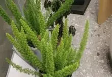 蓬莱松是天门冬科、天门冬属多年生丛生草本植物。宿存,圆柱形肉质根,纵截面为绿色和表面灰色。植株高可达3米。茎呈圆柱形或近四边形,底部木质化,具有灰色或灰褐色。幼嫩的茎在每个节上都被紫绿色鳞片包,…全部>>