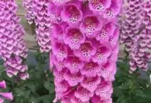 毛地黄是车前科、毛地黄属一年生或多年生草本植物。株高0.5—1米,茎直立,少分枝,全株被灰白色短柔毛和腺毛叶基生,呈莲座状,卵圆形或卵状披针形。顶生总状花序,花冠钟状,紫红色,内面有浅白斑点。菊果卵形。…全部>>
