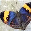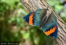 枯叶蛱蝶,又名木叶蝶、树叶蝶等,属于蛱蝶科。翅正面黑褐色,具深蓝色光泽,前翅顶角尖出,顶区有1枚小白点,中部有1条倾斜的橙色斑带,从前缘延伸至Cu室外缘,u室中部有1枚黑色圆斑,…全部>>