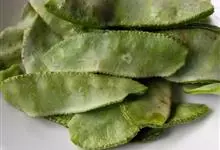 扁豆 Sweet)是豆科扁豆属多年生缠绕藤本植物,又名鹊豆、沿篱豆、藤豆等。全株几无毛,茎长可达6米。羽状复叶具3小叶;托叶基着,叶片披针形;小托叶线形,小叶宽三角状卵形,宽与长相等,…全部>>