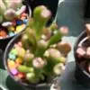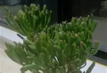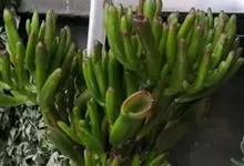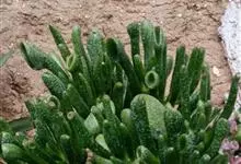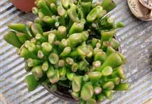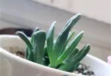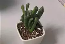 筒叶花月,是景天科青锁龙属的多年生草本植物。植株多分株,灌木状,茎较粗壮,圆柱形,表皮灰褐色;叶片肉质,互生,呈圆筒状,簇生于茎或分枝顶端,叶端呈斜截形,截面为椭圆形;花呈星状,淡白色;花期秋季。…全部>>