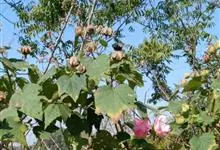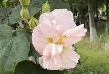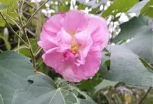 木芙蓉,锦葵科木槿属落叶灌木或小乔木。小枝上有细绒毛;叶片为卵状心形,托叶为披针形,常早落;花单生,花萼为钟形,花冠初为白色或淡红色,后逐渐变为深红色;果实为扁球形,有淡黄色的毛附着。花期8到10月。…全部>>