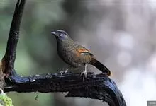 白颊噪鹛是雀形目噪鹛科噪鹛属鸟类,又称土画眉、小画眉、小噪鹃。成鸟额至头顶栗褐色,长眉纹、眼先和颊纹棕白色,眼后至耳羽深褐色,…全部>>