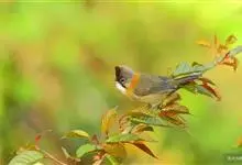 纹喉凤鹛:小型鸟类,体长13-16厘米。头顶和羽冠暗褐色或褐灰色,上体橄榄褐色,飞羽黑褐色,外侧次级飞羽表面橙黄色,构成一块纵形翼斑,极为醒目。颏、喉淡棕白色,具黑色纵纹,腹和尾下覆羽橙黄色。…全部>>