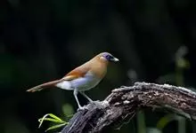 白颊噪鹛是雀形目噪鹛科噪鹛属鸟类,又称土画眉、小画眉、小噪鹃。成鸟额至头顶栗褐色,长眉纹、眼先和颊纹棕白色,眼后至耳羽深褐色,…全部>>