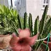 巨花犀角又称大豹皮花,是夹竹桃科犀角属的一种植物。茎粗,花大,边缘生长细毛。植株柱形多分枝呈丛生,柱形具4棱,棱缘具细小疣突。花大,五角星形黄色,并有横向棕褐色斑纹,似豹皮而得名。花期夏秋两季。…全部>>