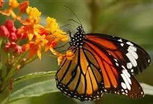 黑脉金斑蝶:翅阔8.6-12.4厘米。雄蝶较雌蝶为大。成年蝶颜色鲜艳,翅膀上有显眼的橙色及黑色斑纹,周围是宽阔的黑色边框,布有许多白色斑点。这种引人注目的着色是对捕食者的视觉警告,表示这个物种有毒;…全部>>