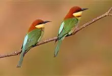 蓝颊蜂虎:是蜂虎科、蜂虎属的鸟类,共有2个亚种。体长27-33厘米,翼展46-49厘米,体重38-50克。嘴形细长而下弯,先端尖,…全部>>