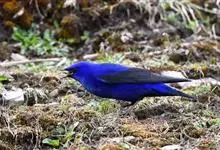 蓝大翅鸲是鹟科、大翅鸲属小型鸟类,体长19-21厘米。两翅尖长。雄鸟通体鲜紫蓝色具金属光泽。两翅和尾黑色。雌鸟上体灰褐色,头、颈、翕具棕白色纵纹,翅上有白色翅斑。虹膜暗褐色,嘴、脚黑色。…全部>>