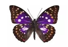 大紫蛱蝶为大型蝶种,翅展约86~110mm。翅紫黑色,有白色斑点点缀其中,雄蝶的翅具强烈紫色虹彩,其余部分暗褐色,后翅臀角具粉色斑。雌蝶体型较大,但是没有蓝紫金属光泽。原产于东亚的蝶类。…全部>>