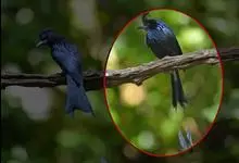 发冠卷尾是中型鸟类,体长28-35厘米。通体绒黑色缀蓝绿色金属光泽,额部具发丝状羽冠,外侧尾羽末端向上卷曲。栖息于海拔1500米以下的低山丘陵和山脚沟谷地带,多在常绿阔叶林、次生林或人工松林中活动。…全部>>