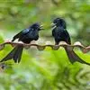 黑卷尾是雀形目卷尾科一属,又称铁练甲、铁燕子、铁林哥、羊蹄刺、榨油郎,体长约30厘米全身蓝黑色而具金属光泽,尾长且分叉较深。幼鸟似成鸟,金属光泽弱,下腹部具近白色的横纹。虹膜暗红色,嘴黑色,脚黑色。…全部>>