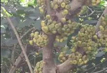 大果榕是桑科榕属的小乔木,株高可达10米;幼枝被柔毛;叶互生,宽卵状心形或近圆形;雄花无梗、匙形、花丝长,雌花生于雌株榕果内,子房白色;榕果簇生于树干基部或老茎短枝上、扁球形或陀螺形,…全部>>