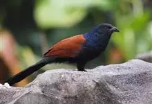 褐翅鸦鹃,是鹃形目鸦鹃科鸦鹃属的鸟类。褐翅鸦鹃的身体为黑色;头颈和胸带蓝紫色金属光泽并具黑亮的羽干纹,下胸至腹部泛金属绿光泽;两翼和肩部为棕栗色,外侧飞羽具暗色羽端,尾羽闪铜绿色光泽;虹膜赤红色,…全部>>