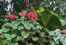 赪桐 Sweet)是唇形科、大青属灌木,高1-4米,叶片圆心形,顶端尖或渐尖,基部心形,边缘有疏短尖齿,表面疏生伏毛,二歧聚伞花序组成顶生,大而开展的圆锥花序,花序的最后侧枝呈总状花序,花萼红色,…全部>>