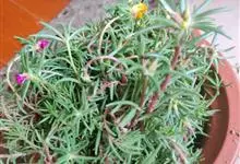 大花马齿苋:一年生草本,高10-30厘米。茎平卧或斜升,紫红色,多分枝,节上丛生毛。叶密集枝端,较下的叶不规则互生,叶片细圆柱形,无毛。花单生或数朵簇生枝端,直径2.5-4厘米,…全部>>