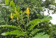 翅荚决明 Roxb.)是豆科决明属灌木植物,高3米。羽状复叶,在叶柄和叶轴上有窄翅;小叶倒卵状长圆形,先端圆钝,基部斜截形;总状花序顶生和腋生;荚果带形,…全部>>