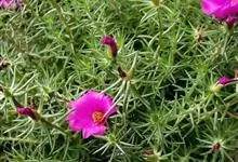 大花马齿苋:一年生草本,高10-30厘米。茎平卧或斜升,紫红色,多分枝,节上丛生毛。叶密集枝端,较下的叶不规则互生,叶片细圆柱形,无毛。花单生或数朵簇生枝端,直径2.5-4厘米,…全部>>