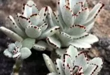 褐斑伽蓝是景天科、伽蓝菜属多年生肉质草本植物或小灌木。全株灰白色,密布白色茸毛。叶片长卵形,上半部具有齿状叶缘,叶缘处有褐色斑点;叶序对生或以近轮生的方式紧密排列。花期为春、夏季,…全部>>