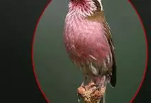 喜马拉雅白眉朱雀:小型鸟类,体长15-17厘米,体重24-35克。额基、眼先深红色,前额和一条长而宽阔的眉纹珠白色沾有粉红色并具丝娟光泽,在暗色的头部极为醒目。头顶至背棕褐或红褐色、具黑褐色羽干纹,…全部>>